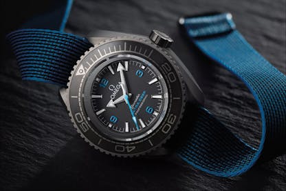 The use of high-tech metals also began to figure more heavily in the collection, with an all-titanium version released in 2016 and an all-ceramic Si3N4 version with a titanium dial introduced in 2023. But perhaps the biggest technical coup came in the form of the 2019 Seamaster Planet Ocean Ultra Deep Professional, a watch that survived a descent to the Challenger Deep, located at 10,935m below sea level. This special prototype model was turned into a series of regular-production watches in 2022 with the release of the Omega Planet Ocean Ultra Deep 6000M. Produced from Grade 5 titanium and Omega’s proprietary O-MEGASTEEL, this impressive diver is rated to a stunning 6,000m.