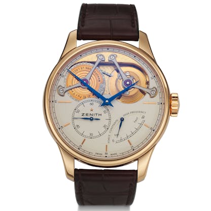 Another watch that showcases the chain through an aperture on the dial side is the Zenith Academy Georges Favre-Jacot. Coming in at 45mm and 14.35mm, it is not for the weak-wristed. Released in 2014 for the 150th anniversary of Zenith the watch is powered by the El Primero 4810 movement, featuring a high-frequency balance. This elevated oscillation rate demands greater energy, necessitating a larger and more robust mainspring. However, a powerful mainspring introduces its own challenges. The variation in torque between a fully wound and a completely unwound mainspring is substantial, which can lead to issues with isochronism (there is that word again).