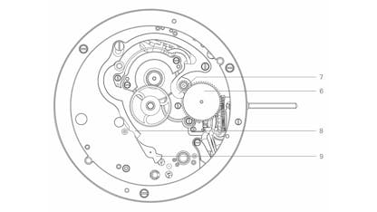 They conversely solved the issue of when the watch is nearly unwound. This mechanism halts the movement just before the mainspring fully unwinds, relying on the power-reserve wheel (6) as the key component.