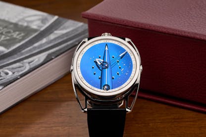 And the DB28 Skybridge is both a gesture to the past and a token of the future. The science fiction inspiration that is increasingly present in De Bethune watches as the years go by, is here explicitly visible in the dial design, which is the shape of a Golden Age science fiction rocketship – a bridge to the sky in the most literal sense. Complexity is celebrated, but here with a kind of purity and simplicity which puts the contrast of finishes, including blued titanium, front and center. It’s the most literally space-age watch of the Heritage Collection, but it’s also deeply rooted in traditional watchmaking and traditional watchmaking values, albeit transformed and transmuted in entirely unexpected ways.