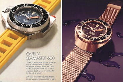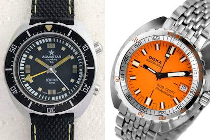The diving watch went on to enjoy considerable success in the 1950s. In 1953, Blancpain presented its Fifty Fathoms, the first modern divers’ watch, produced at the request of the French army’s combat frogmen. Aquastar, now almost forgotten, developed the Benthos 500, a watch waterproof to depths of 300 metres. Doxa also lined up some great firsts: unveiled at Baselworld and first marketed in 1967, its Doxa Sub concept became the first fully professional diving watch to be affordable for a wider audience.