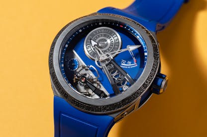 LMP EVO was really born out of my personal frustration of never wearing one of my creations by sea or at the pool. With that in mind, I imagined my favorite LM, the Perpetual in an all-round version that I could keep on my wrist all day long regardless of what I was doing. I have to admit, it changes your life not to have to change your watch to suit different daily activities. You could say in a sense that this follows my own personal evolution—the fact that I started only wearing sneakers 16 years ago with MB&F, and then bought an SUV (which I said I would never do… but now I can bulldoze over the speed bumps, rather than stop each time, and I can throw all the family’s stuff into it without thinking twice), and realized how practical stuff actually makes your life easier, and you can concentrate on more important things with this mental space re-acquired.