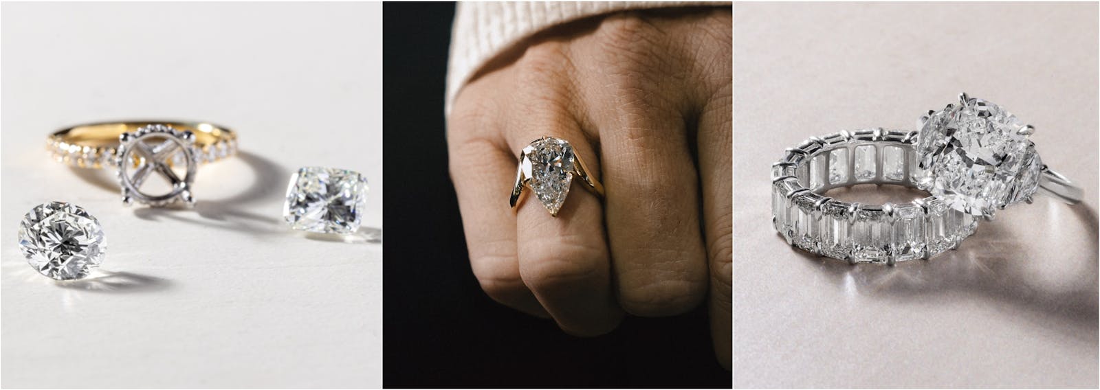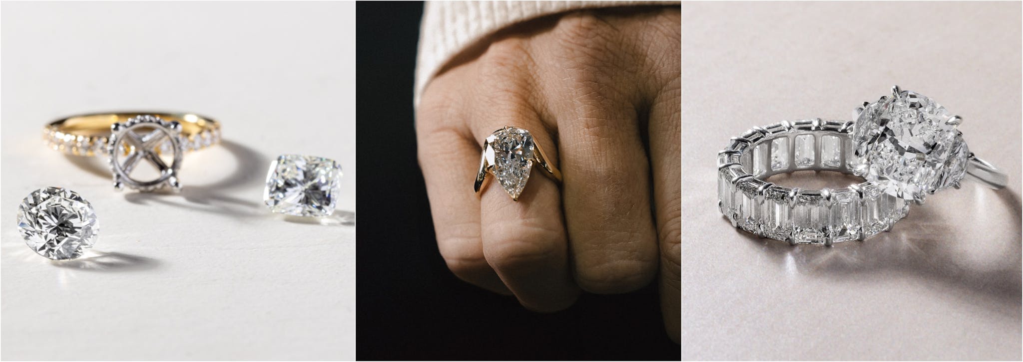 2. Back to business – The diamond’s cut, clarity, color, and carat weight influence the ring’s price. Prioritize what matters most to you—whether it’s sparkle or size—and adjust accordingly. A well-cut diamond will shine brighter, so if sparkle is what you’re after, prioritize cut over carat size. Clarity and color are also areas where you can balance your priorities depending on your budget. There are a lot of tricks to know for each diamond cut and shape – don’t be afraid to ask a pro!