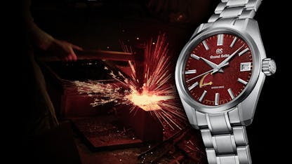 The three new US-only watches all are designed around different aspects of the forging of the Japanese sword. SBGA489 and SBGA491 have patterned dials, reminiscent of the steel sand from which tamagahane is made; SBGA489 is specifically a call-out to kawagane steel, while SBGA491 is inspired by the more flexible, but less hard, steel used for the shingane. The third watch in the set, SBGA493, is a limited edition of 500 pieces and has a strikingly different dial from the other two watches – a brilliant red radial pattern, which is supposed to evoke the sparks which fly from the steel billet as it is being folded in the forge. All three watches are powered by the Spring Drive automatic caliber 9R65; all are 40mm x 12.5mm and all are part of the Grand Seiko heritage collection.