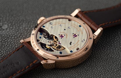 Over the centuries we saw many variations on the configuration of the tourbillon, but few advances in its basic principles. One question was how to stop the tourbillon while setting the time, in order to allow the watch to be set more precisely. For the first time in history, this came with A. Lange & Söhne’s Cabaret Tourbillon in 2008. Lange devised a mechanism to stop the tourbillon when the crown is pulled and since then, every tourbillon from the brand is equipped with this groundbreaking invention.