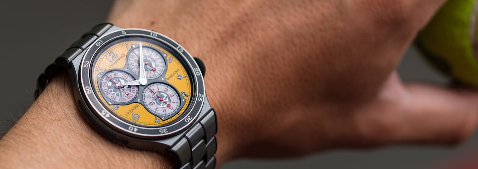 In 2018 yet another refresh to the line arrived, this time with changes for the Automatique Réserve and Centigraphe models. Both in titanium, these models now feature a black ceramic timing bezel, as well as the option of a vibrant yellow dial. Case diameters were also bumped up to 44mm to match the split-seconds model, but otherwise the duo seemed unchanged.