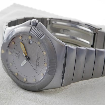 Omega describes the finish as “anodic oxidation,” a surface treatment that enhances corrosion resistance, which is understandable for a “dive watch.” This process is similar to anodizing aluminum, where a metal component is submerged in an electrolytic solution and subjected to an electric current, forming a protective oxide layer. This oxide coating acts as a barrier against further corrosion.