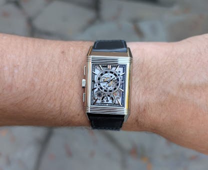 You may be wondering how a Reverso ended up in the unicorn section of this roundup. This particular Reverso is one that, as I like to say, only the truly initiated tend to notice, let alone appreciate. Released at Watches and Wonders in 2023, the Reverso Tribute Chronograph debuted in two versions: stainless steel, the reference most often seen on our app, and pink gold. While it was a regular production model, it carries DNA that traces back to one of the most unusual Reversos ever made.