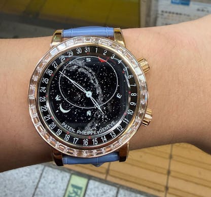 I’ll be honest this is one that I am unsure how much I need to unpack the specs and history on this watch. However for the sake of saying I did so, powering the watch is the self-winding caliber 240 LU CL C, In addition to hours and minutes of mean solar time and a manually adjusted date, the movement displays a rotating sky chart complete with the visible portion of the stars for a given latitude, a meridian indicator, the angular motion and phases of the Moon, and the time of meridian passage for both the Moon and Sirius. Despite these complications, the caliber remains remarkably slim at just 6.81mm thick, driven by Patek Philippe’s 22K gold off-center micro-rotor and regulated by a Gyromax balance with a Spiromax hairspring. Comprising 315 components it offers a power reserve of 48 hours and operates at a frequency of 3 Hz.
