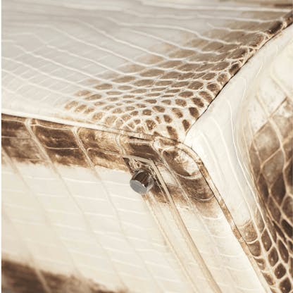 Includes crocodile, alligator, ostrich, and lizard. Highly regulated and prized for rarity, texture, and craftsmanship.