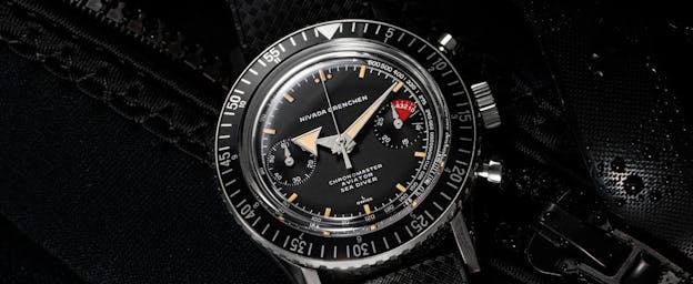 When this recreation was first released, perhaps Jack put it best when he said, “The Chronomaster Aviator Sea Diver was and is something of a watch that tries to be all things to all people, but succeeds at it perhaps better than most. For something that tried (and tries) to cram all the bells and whistles of a classic two-register chronograph into a watch along with a 100-meter depth rating… The Chronomaster Aviator Sea Diver manages to come across, if not as an example of Bauhaus-esque self-restraint, then at least as a technical timepiece which does its level best to deliver a lot of analog information in a coherent fashion. After all, we must recall that its design hails from a time when digital displays were in the future, and being able to decipher an analog gauge at a glance was a necessary survival skill.”