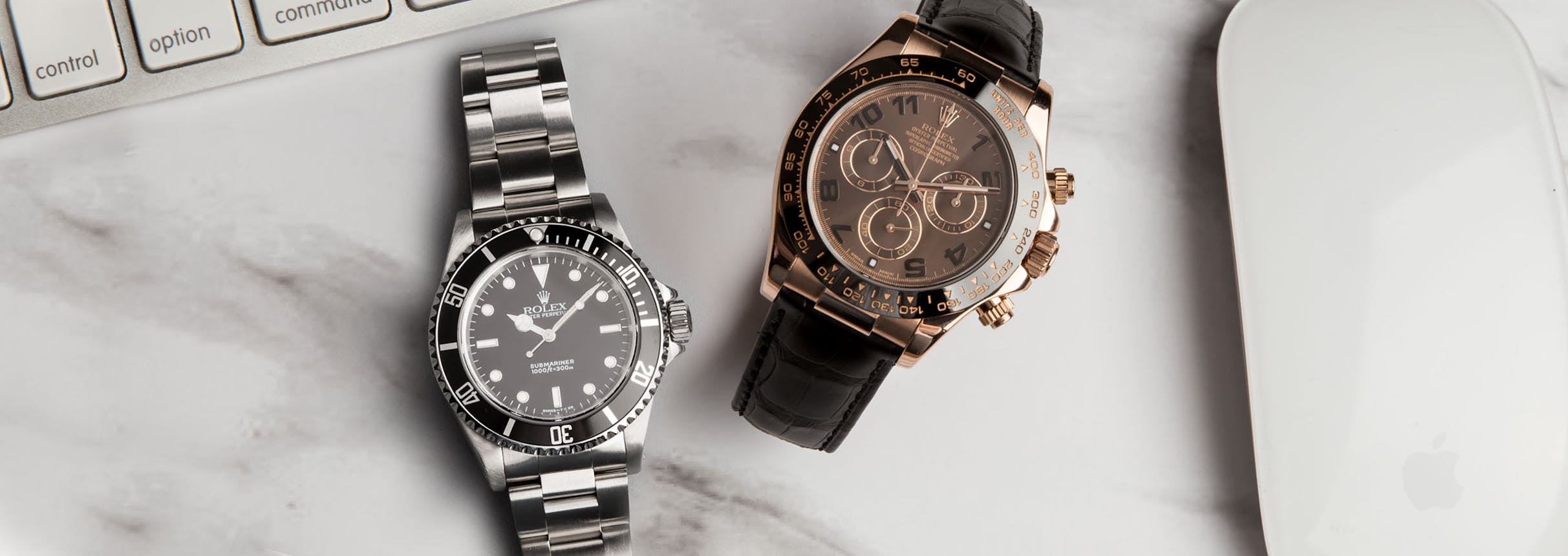 The Daytona and Submariner are two sporty watches from Rolex with very different styles. The Daytona is a chronograph, designed for timing objects in motion and gets its name from the famous Florida speedway. The Submariner on the other hand was designed for diving. Today, both of the models can be seen traveling, on the beach, at the office, and on the wrists during formal occasions. What are the differences between these two versatile and classic Rolex models?