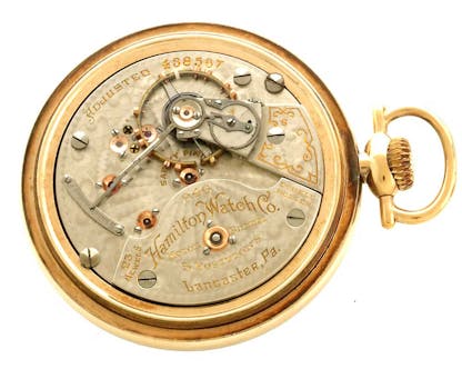 Generally, full plate movements are found in larger pocket watches. They were especially favored by American and British watchmakers, who preferred sturdiness and rigidity over the more elegant full bridge designs. Three quarter plate designs were also favored in both countries and unlike full plate designs, you can occasionally find 3/4 plate movements even today; two of the best known makers are A. Lange & Söhne, and of course, Roger Smith, whose work is almost entirely in the traditional British movement design idiom, including the use of gilt finishing and the rejection of Swiss-French flourishes like Geneva stripes.