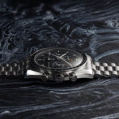 Twenty years after the Speedmaster first set its sights on the moon, the moon itself found its way onto the Speedmaster dial. Dubbed the “Speedymoon,” this unique model was released in a limited series of 1,300 pieces, featuring a moonphase complication adorned with a painted moon and stars. Notably, on some rare versions of this model, the moon includes a painted face, adding an extra layer of character to the design (and collectibility).