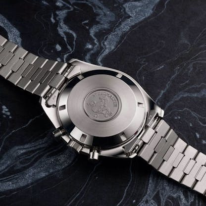 Interestingly the reason this was not considered a “moonwatch”and fell outside of NASA’s certification requirement was because of the moonphase complication. As a result, the caseback lacks the usual “FLIGHT QUALIFIED BY NASA” inscription found on most Speedmasters.
