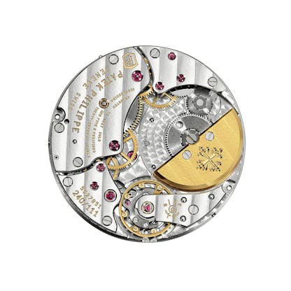 The movement is Patek’s in-house, extra flat self winding caliber 240, which was introduced to the Golden Ellipse line in 1977, in the ref. 3738. The movement has as the saying goes, aged like fine wine and it remains one of the finest self winding movements ever made.
