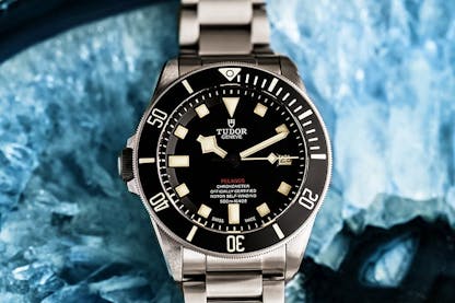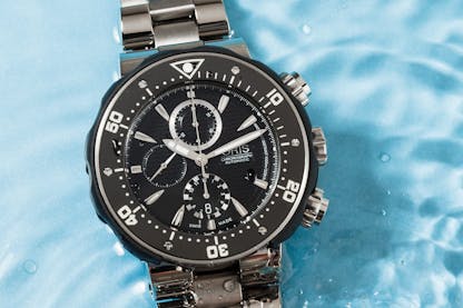 Until this past year, the Submersible was an obscure offshoot of the Luminor line, but now the brand has committed to a full Submersible collection. Effectively a Luminor with a diving bezel, you can find everything from the more compact steel version measuring 42mm across, up to the big bad (and rare) Bronzo models. Their aesthetics are distinct, but similarly to the aforementioned Oris, they’re a beast on the wrist. In chronograph guise, they’re also one of the few options out there using a central minute hand for timing, which is a feature you’ll love if you’ve gotten sick of squinting at subdials.