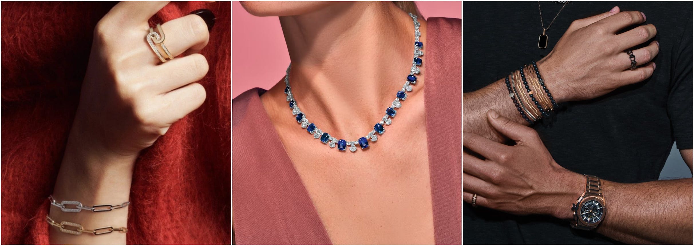 Sapphires, rubies, and emeralds – the colors of love.