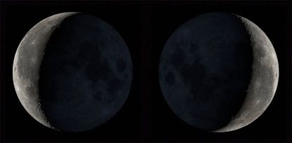 The moonphase you’ll see if you travel is its mirror image as well. If you’re looking at a waning crescent Moon in the Northern Hemisphere, the lit part of the Moon is on the left, and the area in shadow is on the right, but if you’re in the Southern Hemisphere, it’s the other way around.