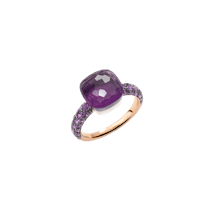 Nudo - Minimalist, clawless gemstone settings that float above the finger. These signature designs are stackable and available in vibrant colors like London blue topaz, amethyst, peridot, and garnet. Nudo rings are among the most recognized pieces in Pomellato's portfolio.