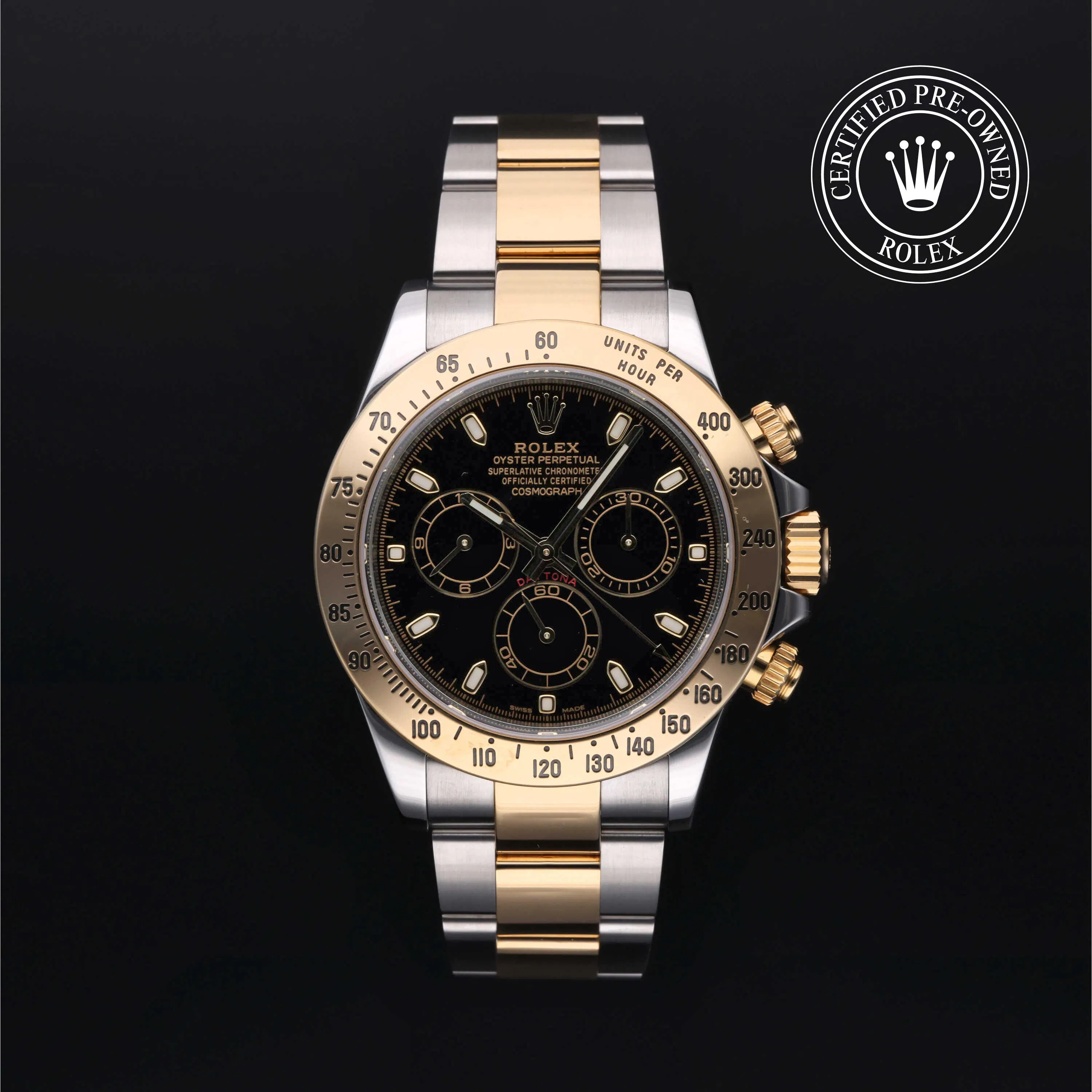 The Cosmograph Daytona is Rolex's racing-inspired chronograph, often referred to as the "Rolex Daytona" by collectors. Designed for professional racing, the Rolex Daytona is an icon in the world of motor sport, flourishing as an unparalleled sport chronograph. From highly coveted models, like the collector-named "Paul Newman" vintage Daytona, to modern marvels such as the platinum "Platona" and the green-dial "John Mayer" Daytona, the catalog of Rolex Certified Pre-Owned Daytona references available to purchase online is expansive. Shop our pre-owned Rolex Daytona watches, certified by Rolex and available in a variety of dial and bracelet combinations.