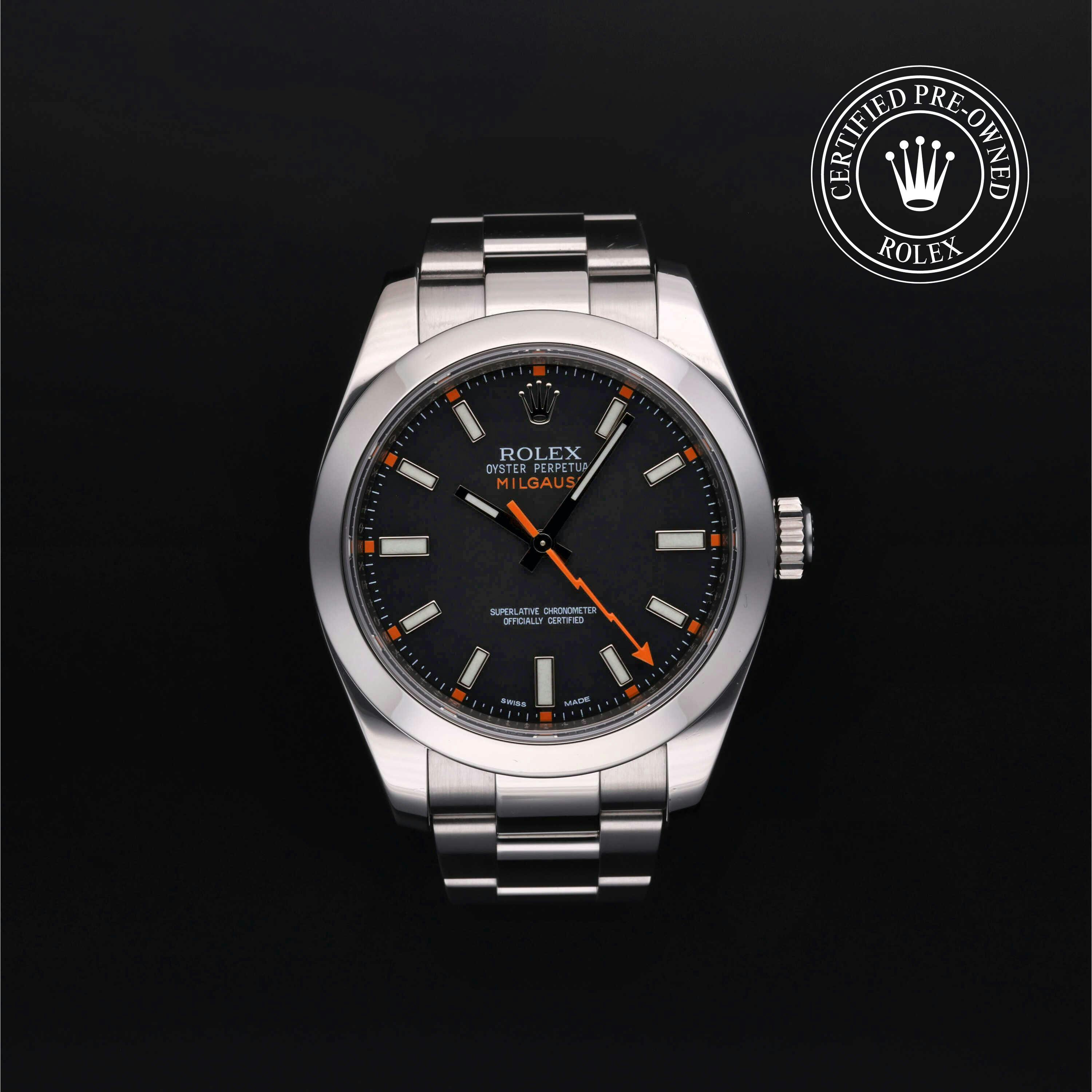 Designed to withstand magnetic fields of up to 1,000 gauss, the Rolex Milgauss was originally engineered for the scientific community, those working in labs or near magnetic equipment. Today, it is appreciated for both its utility and standout aesthetics. Explore our entire collection of Rolex Certified Pre-Owned Milgauss watches to discover classic and contemporary references.